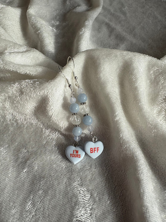 Angelite, Blue Lace Agate & Clear Quartz Convo Earrings