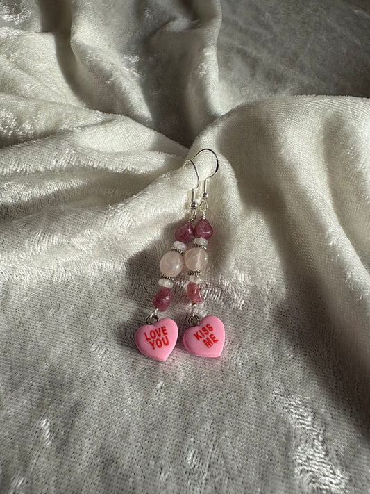Pink Tourmaline, Rose Quartz & White Jade Convo Earrings