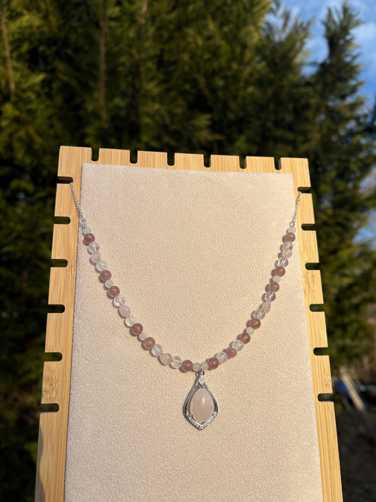 Strawberry Quartz, Rose Quartz, Clear Quartz, & White Jade Cupid’s Necklace
