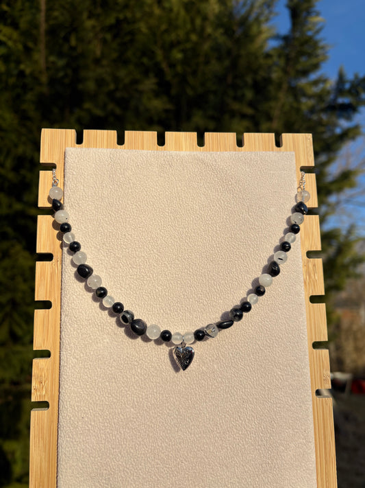 Hypersthene, Tourmalated Quartz, Selenite, & Black Tourmaline Cupid’s necklace