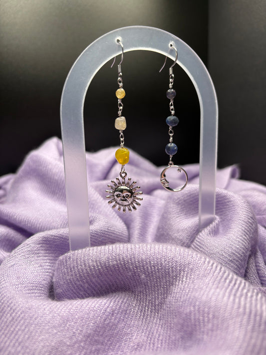 Yellow Opal, Topaz, Yellow Apatite, Iolite, Blue Aventurine, and Sodalite Sun & Moon earrings