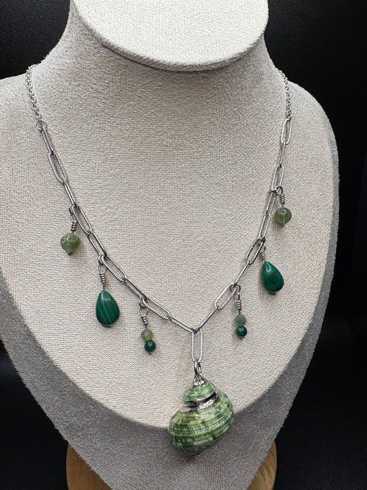 Green Apatite and Malachite charm necklace
