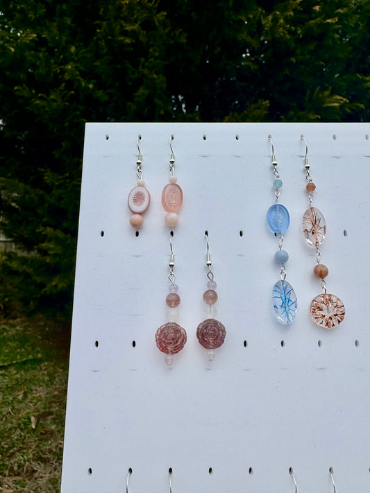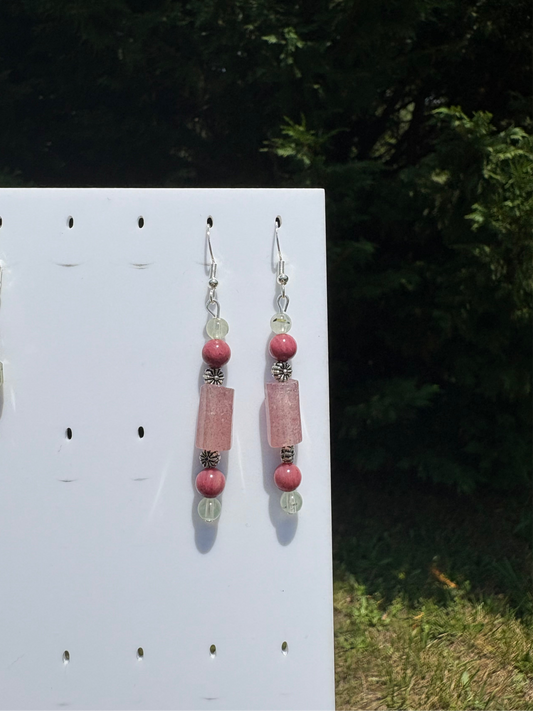 Strawberry Quartz, Rhodonite, & Prehnite Flower earrings