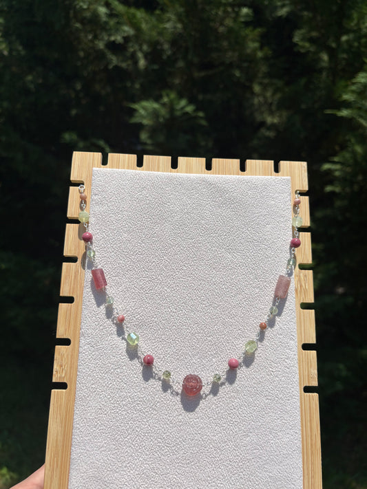 Strawberry Quartz, Prehnite, & Rhodonite Rose necklace