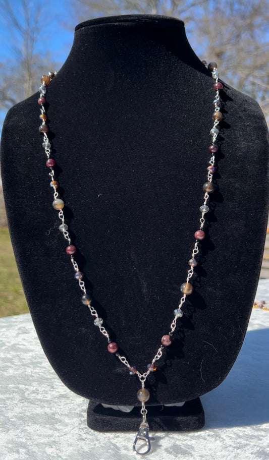 Sold outOnyx, Garnet, & Smoky Agate Lanyard