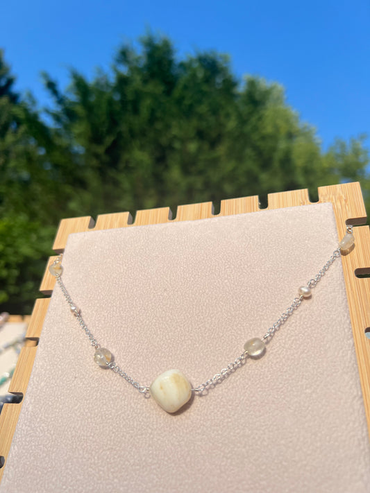 Prehnite & Burmese Jade & Topaz & Mother of Pearl mermaid necklace