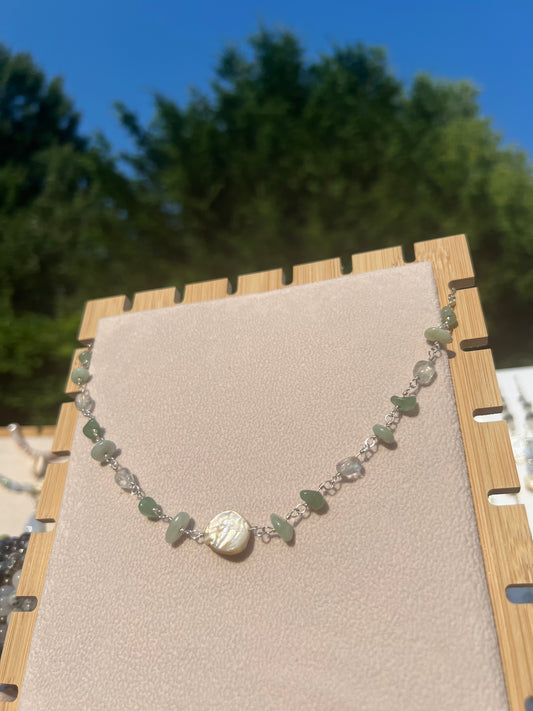 Green Aventurine & Burmese Jade & Topaz & Mother of Pearl mermaid necklace