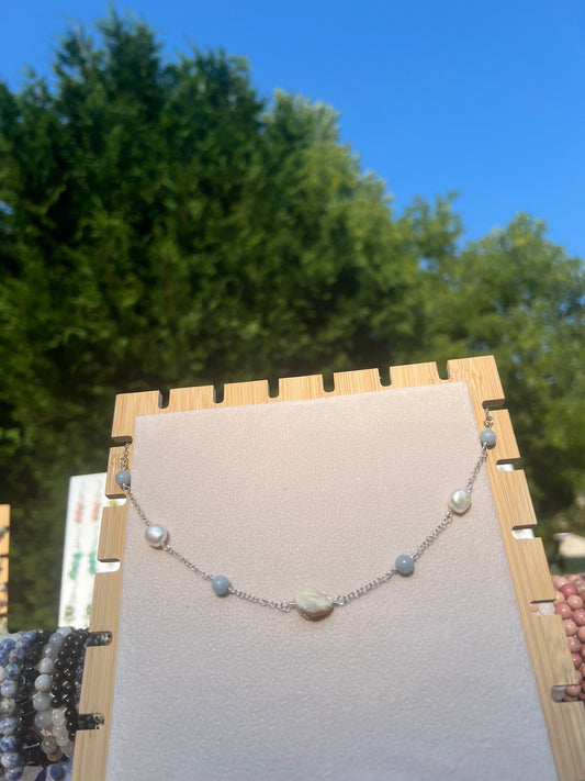 Angelite & Freshwater Pearl & Mother of Pearl mermaid necklace