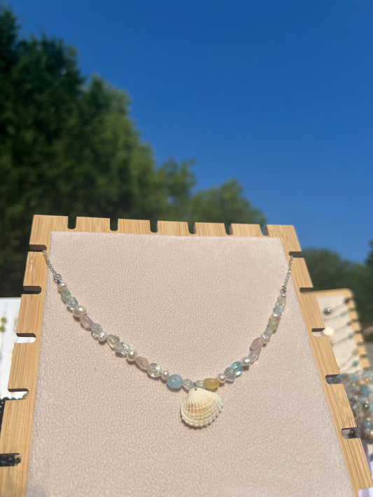 Fluorite & Topaz & Freshwater Pearl & Arca Shell mermaid necklace