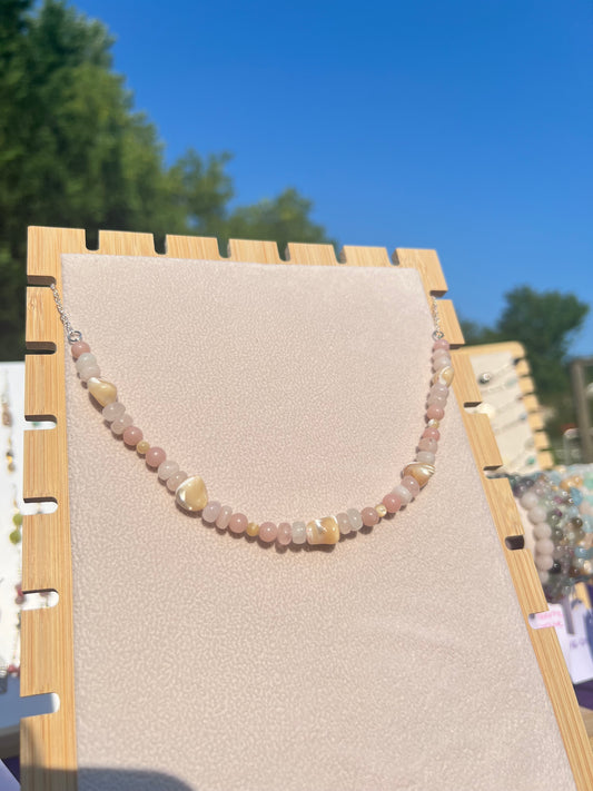 Pink Opal & Morganite & Mother of Pearl mermaid necklace