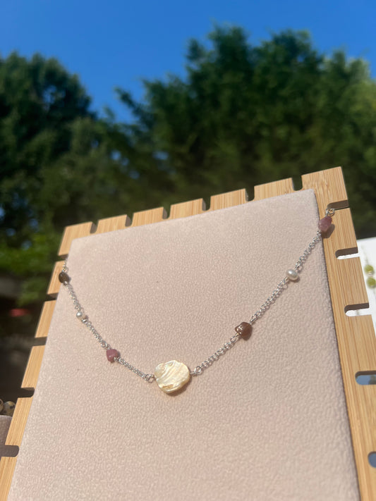 Watermelon Tourmaline & Freshwater Pearl & Mother of Pearl mermaid necklace