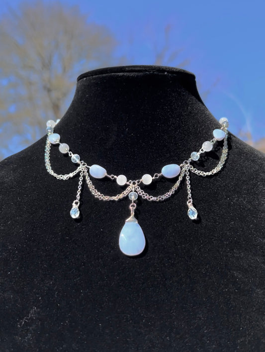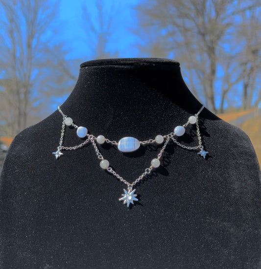 Blue Lace Agate & White Jade Goddess Choker