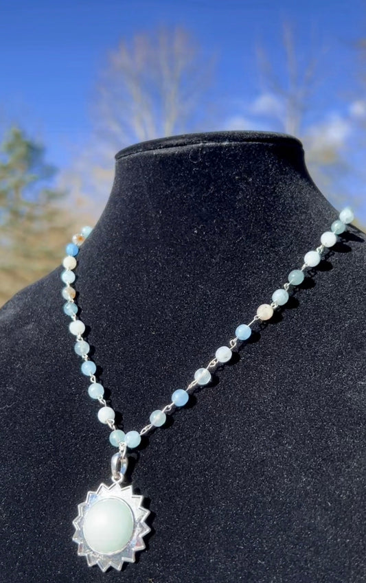 Blue Lace Agate & White Jade Necklace