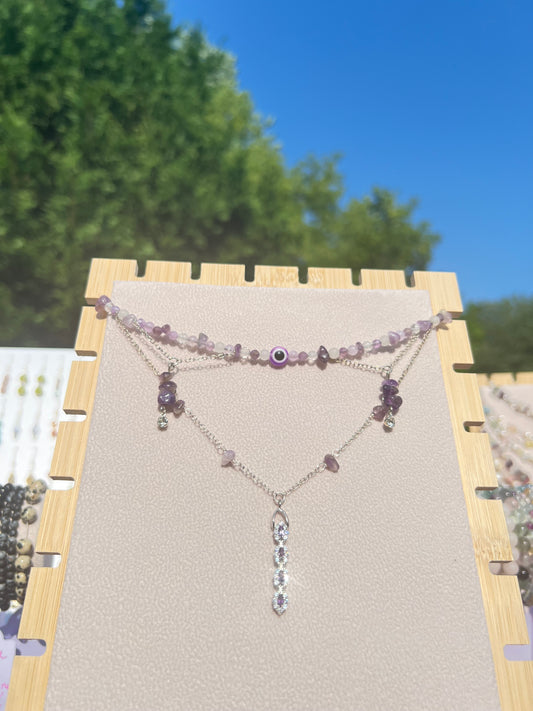 Amethyst & White Jade & Topaz Purple Evil Eye necklace