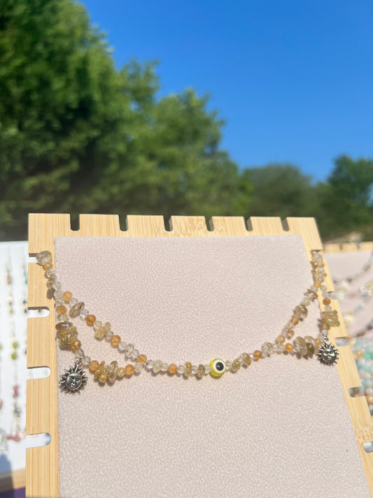 Golden Rutilated Quartz & Citrine Yellow Evil Eye necklace