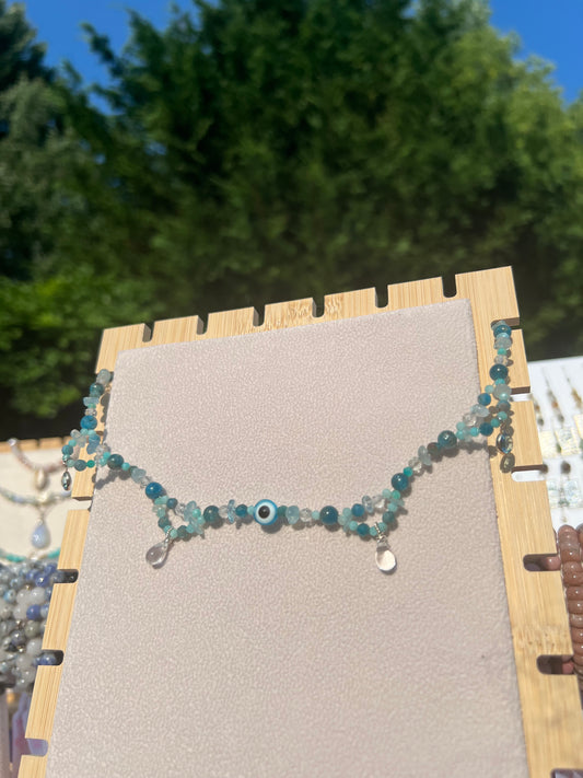 Blue Apatite & Amazonite & Topaz & Aquamarine Light Blue Evil Eye necklace