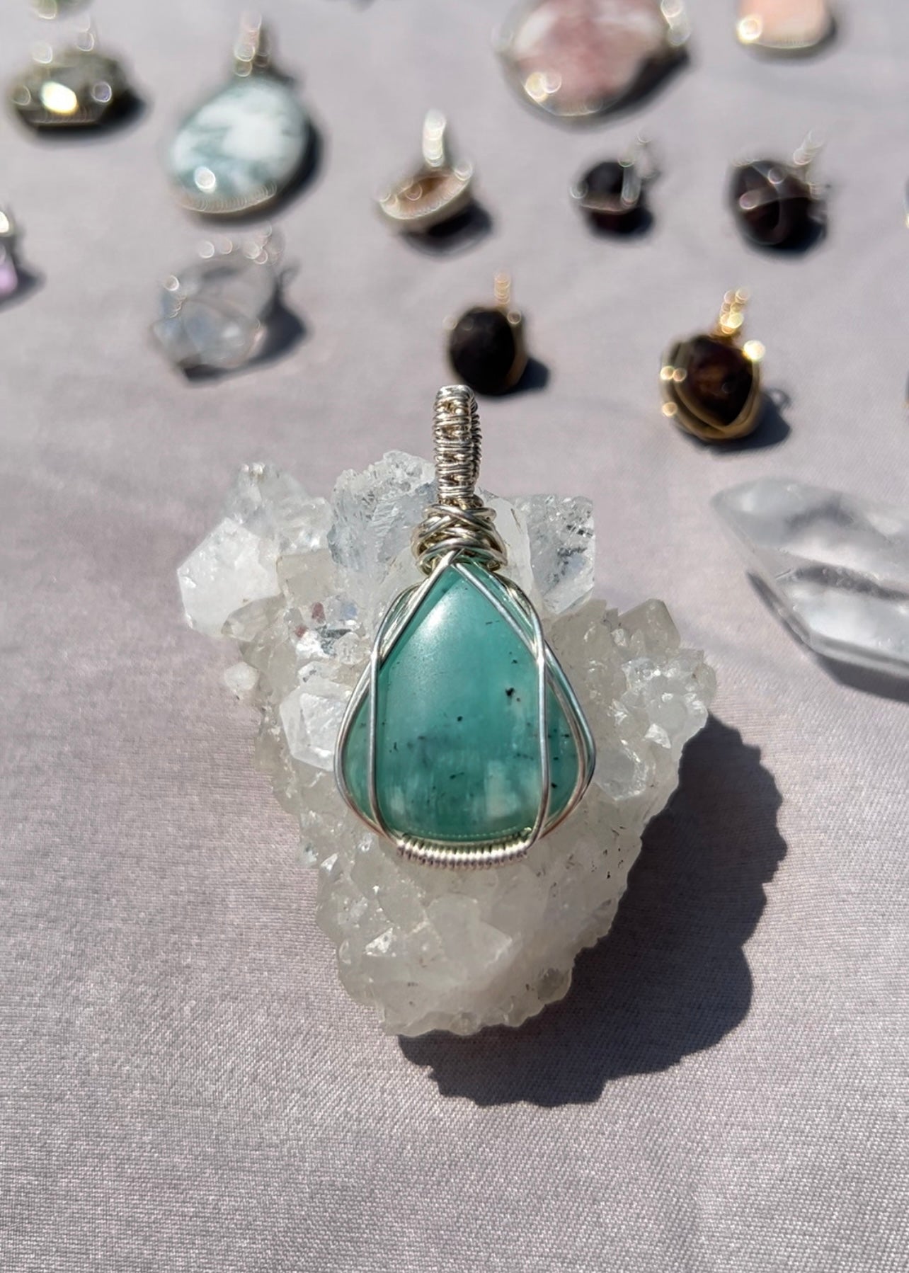 A soothing stone, Amazonite helps calm the mind and body. Helps soothe emotional trauma, alleviating worry and fear by absorbing and eliminating stress and negative energies.