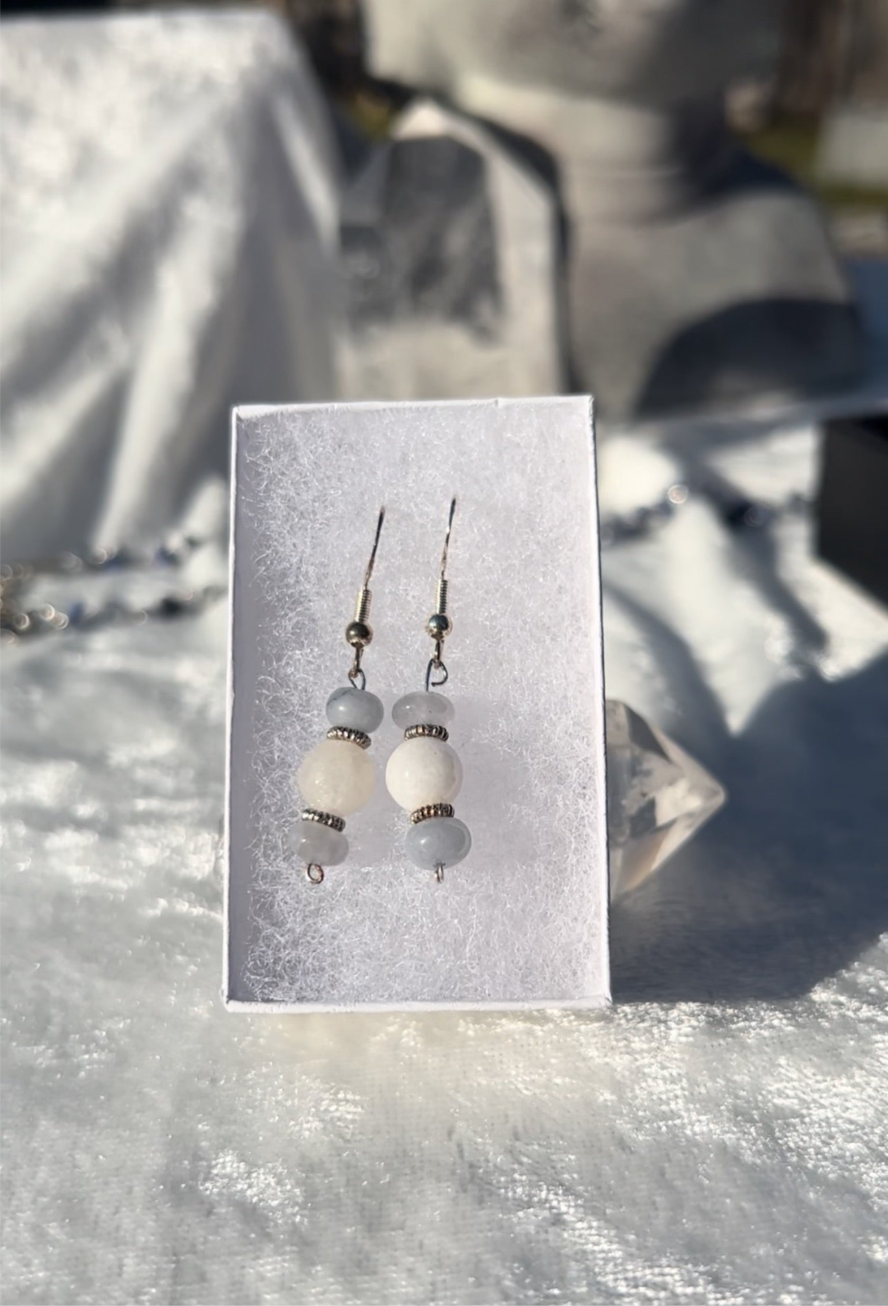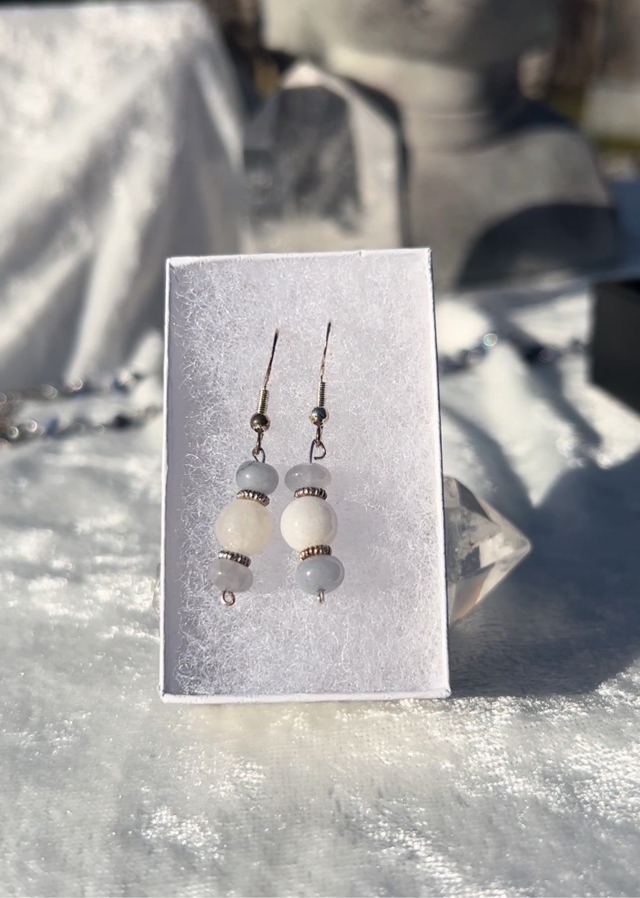 Angelite and White Jade Earrings