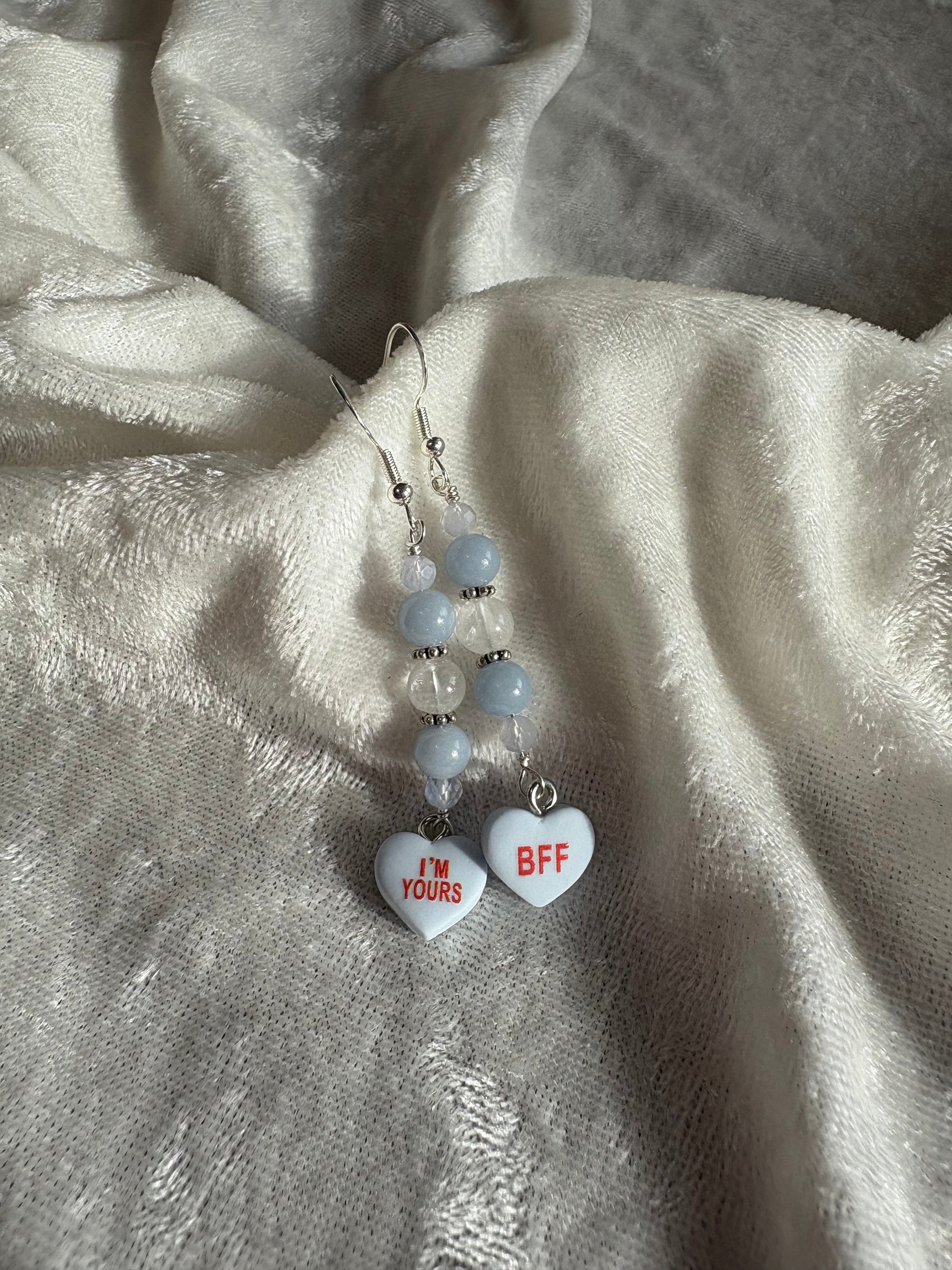 Angelite, Blue Lace Agate & Clear Quartz Convo Earrings