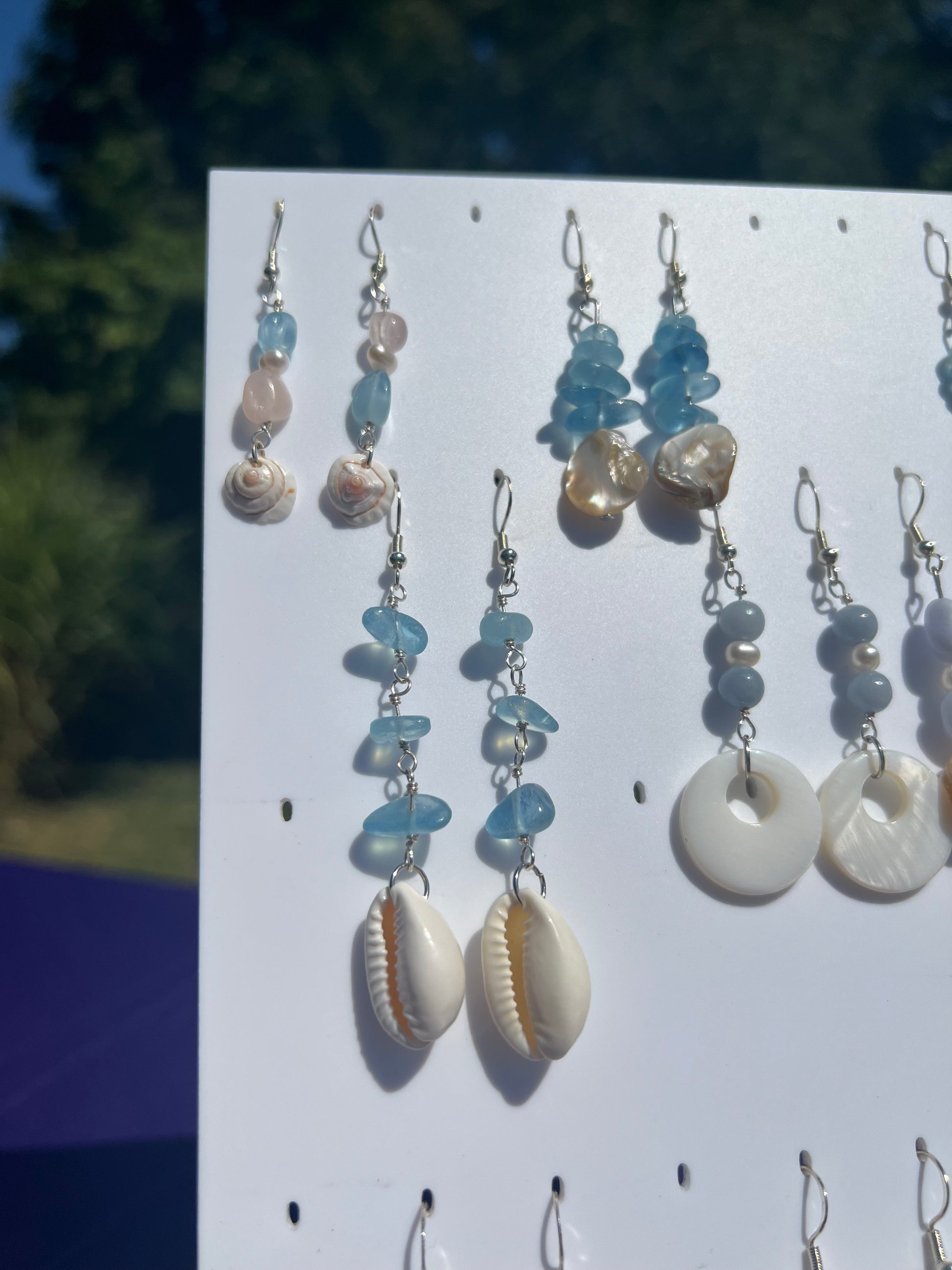 Aquamarine: A stone of courage, enlightenment, and spiritual awareness. Reduces stress by attuning one with their emotions. Inspires truth, trust, and letting go. A helpful tool for meditating and calming of the mind.