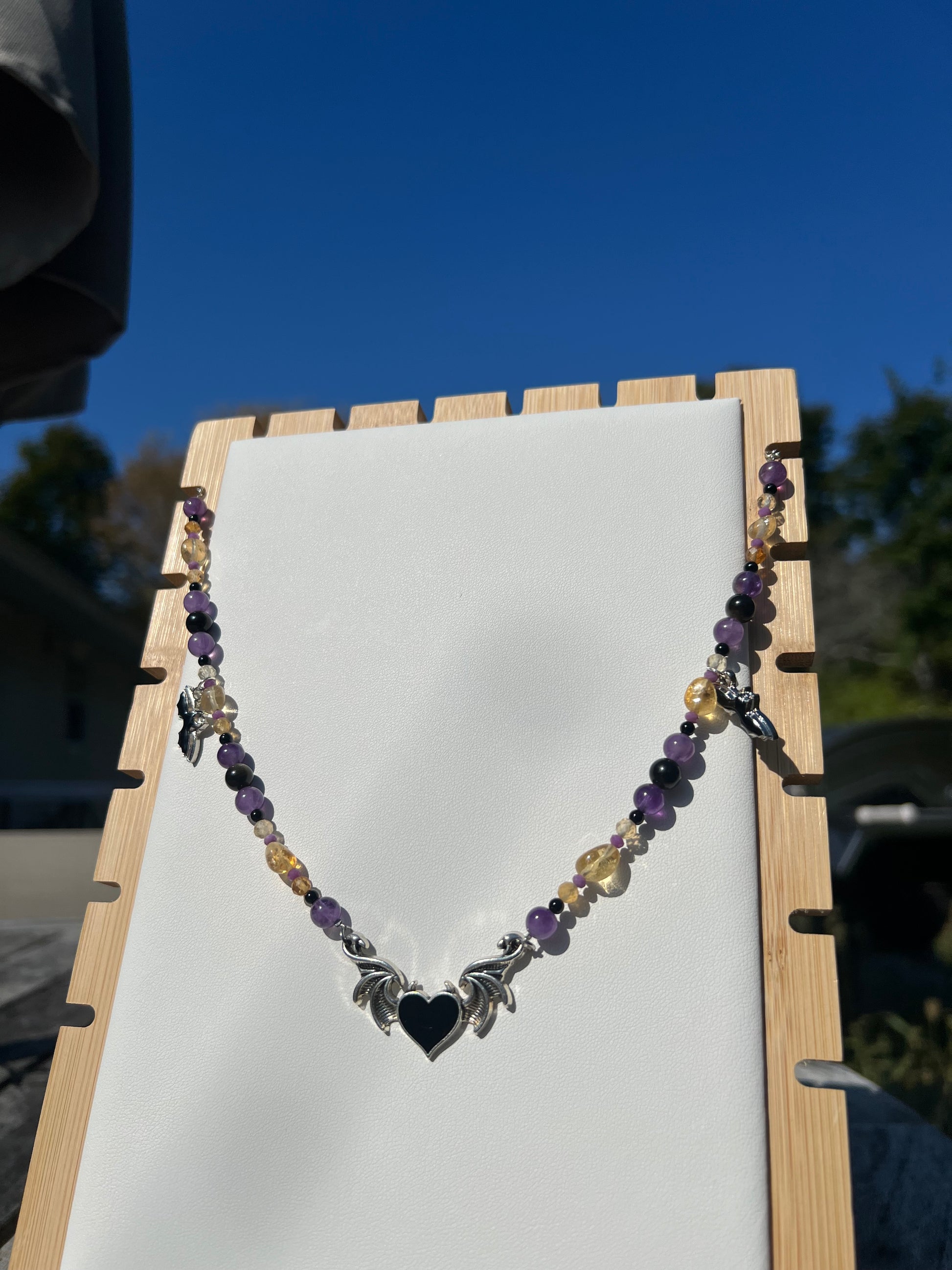 Citrine, Amethyst, Phosphosiderite, Silver Sheen Obsidian, Black Onyx Spooky Necklace