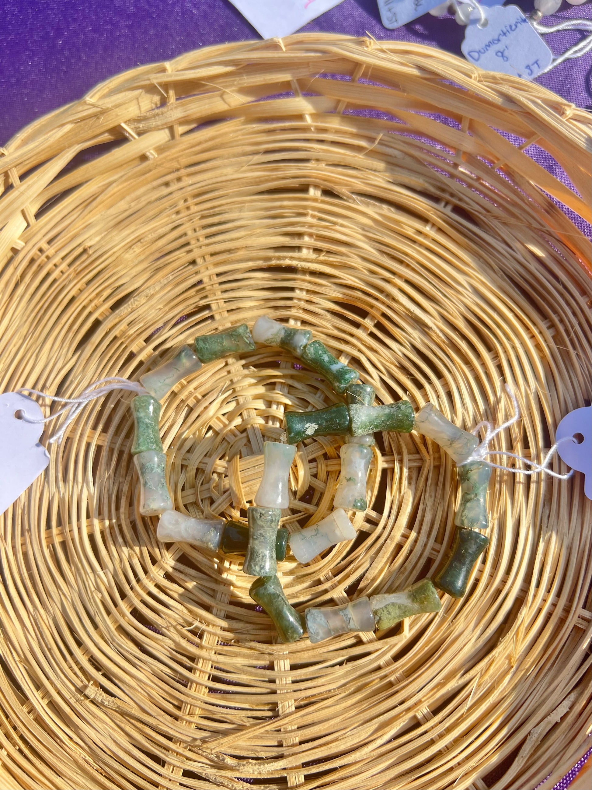 Moss Agate: A stone of healing and protection. Helps relax stiff muscles and calms the mind & body. Used in manifestations for success and abundance. Protects from danger and negative energies.