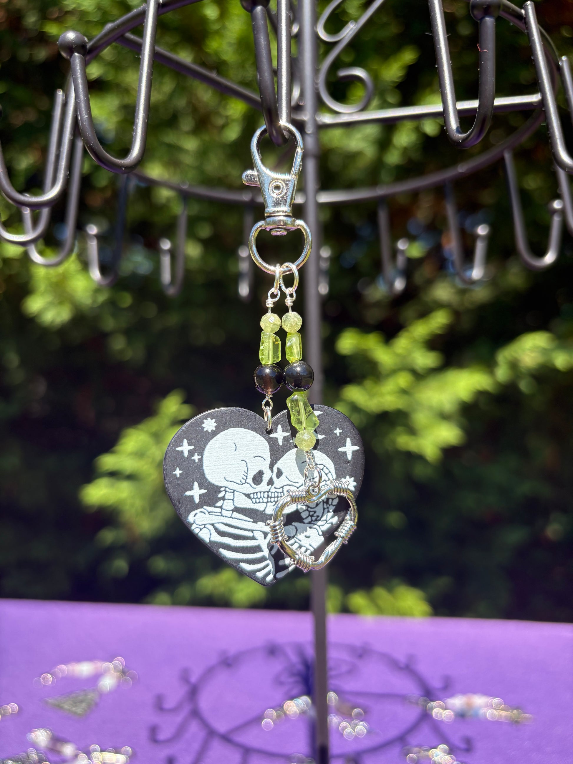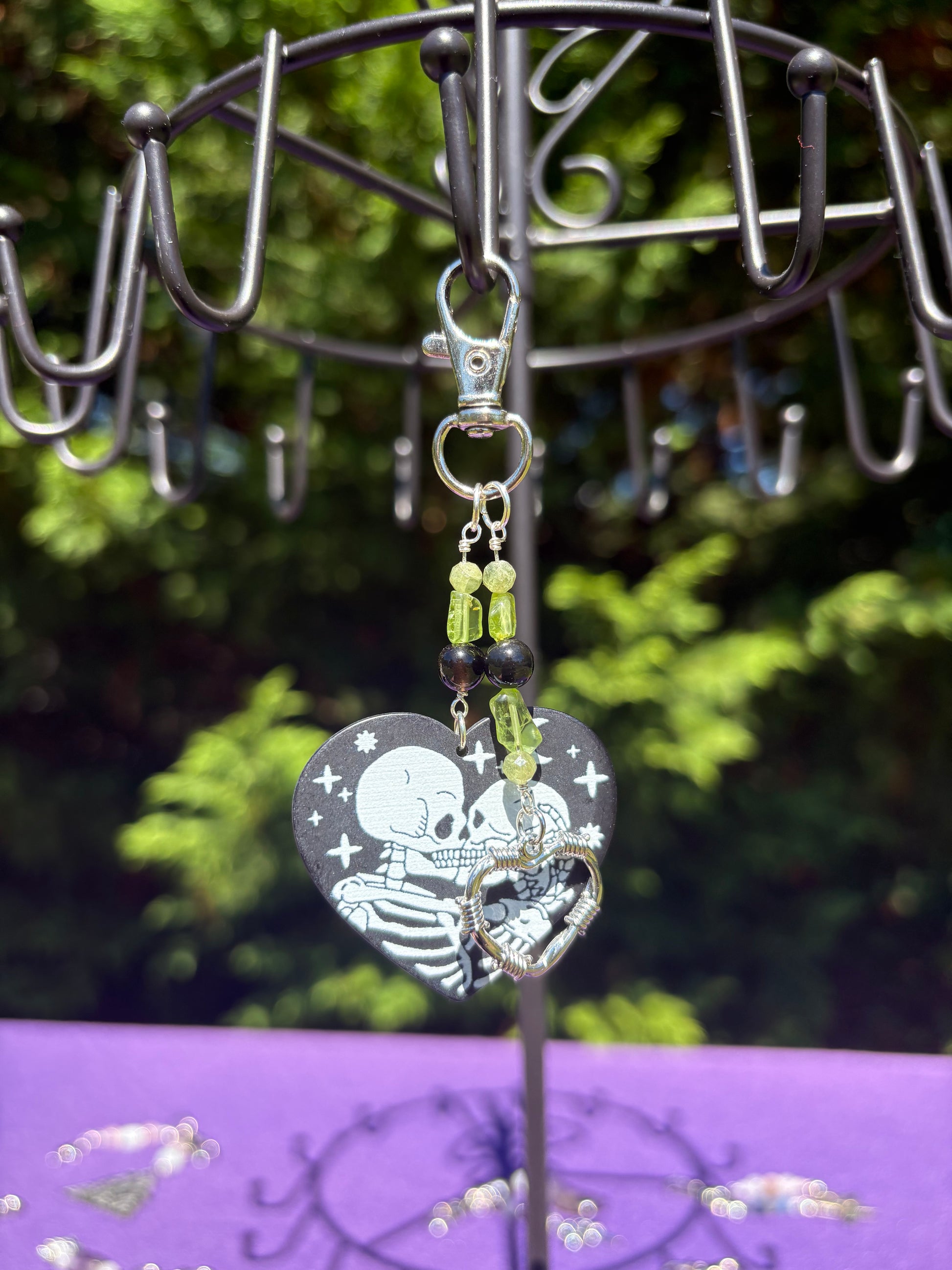 Peridot, Green Apatite, Rainbow Obsidian Skeleton Lovers Charm