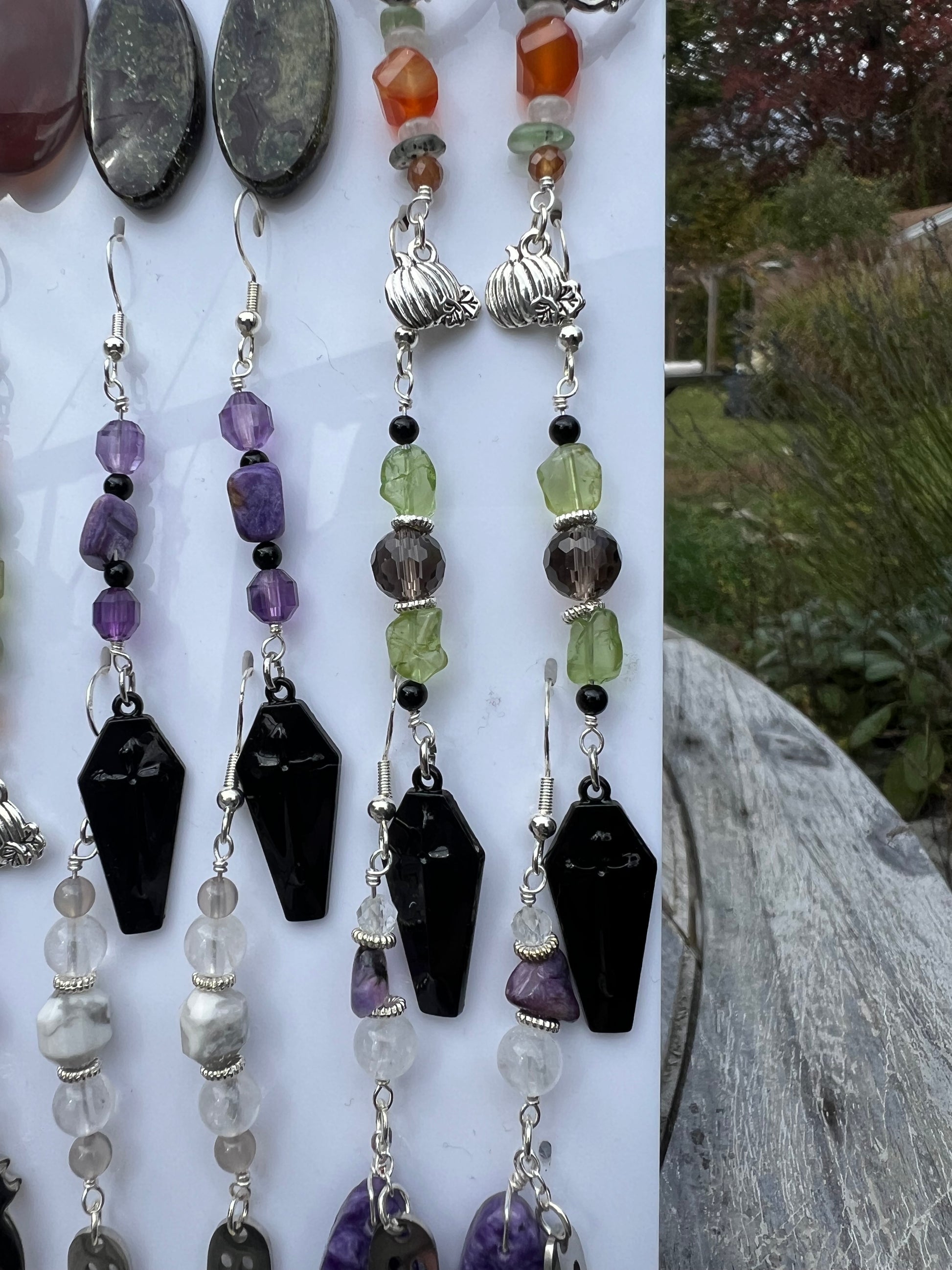 Peridot, Smoky Quartz, Black Onyx Spooky Earrings