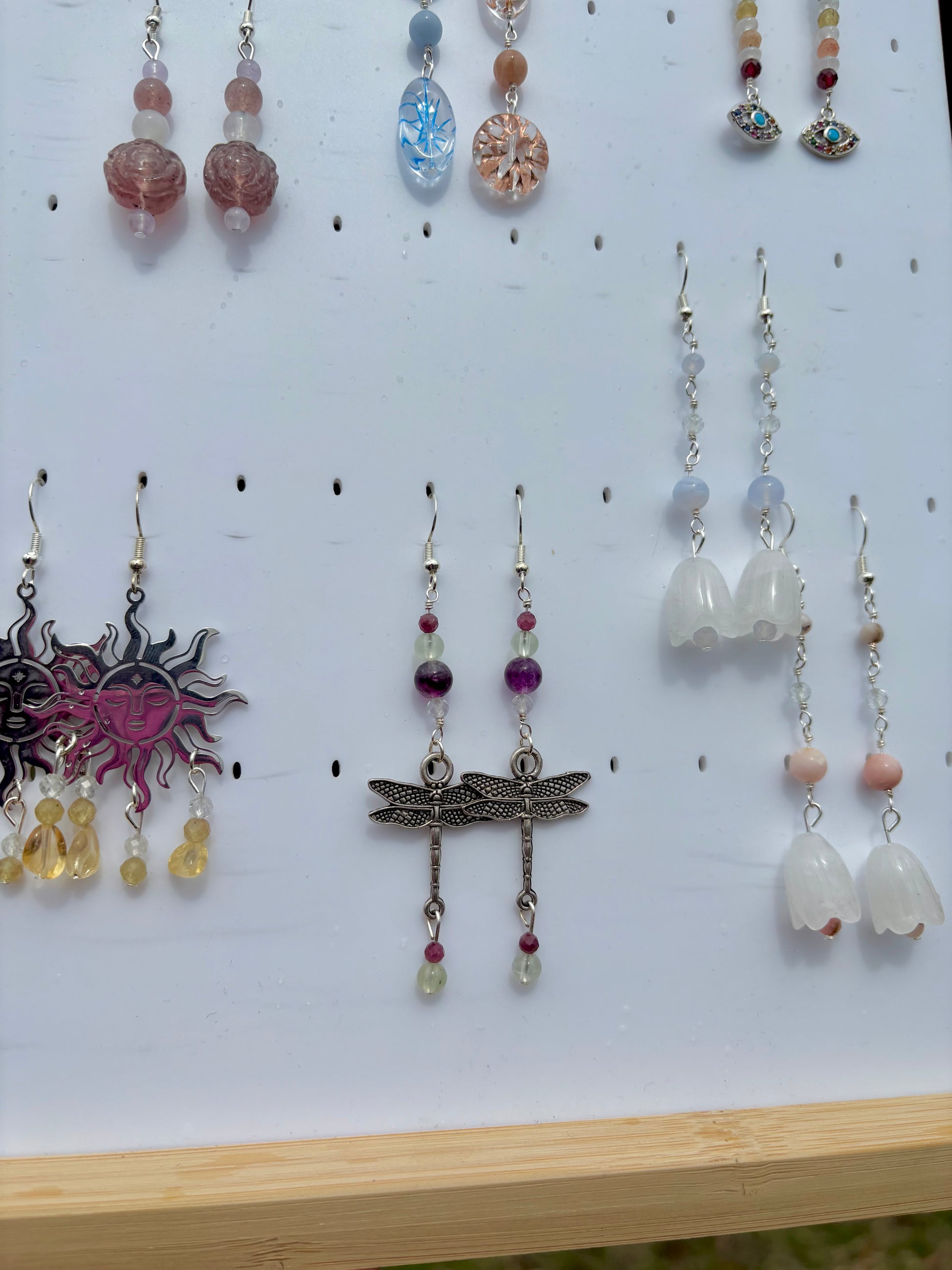 Pink Tourmaline, Prehnite, Fluorite & Topaz Dragonfly earrings