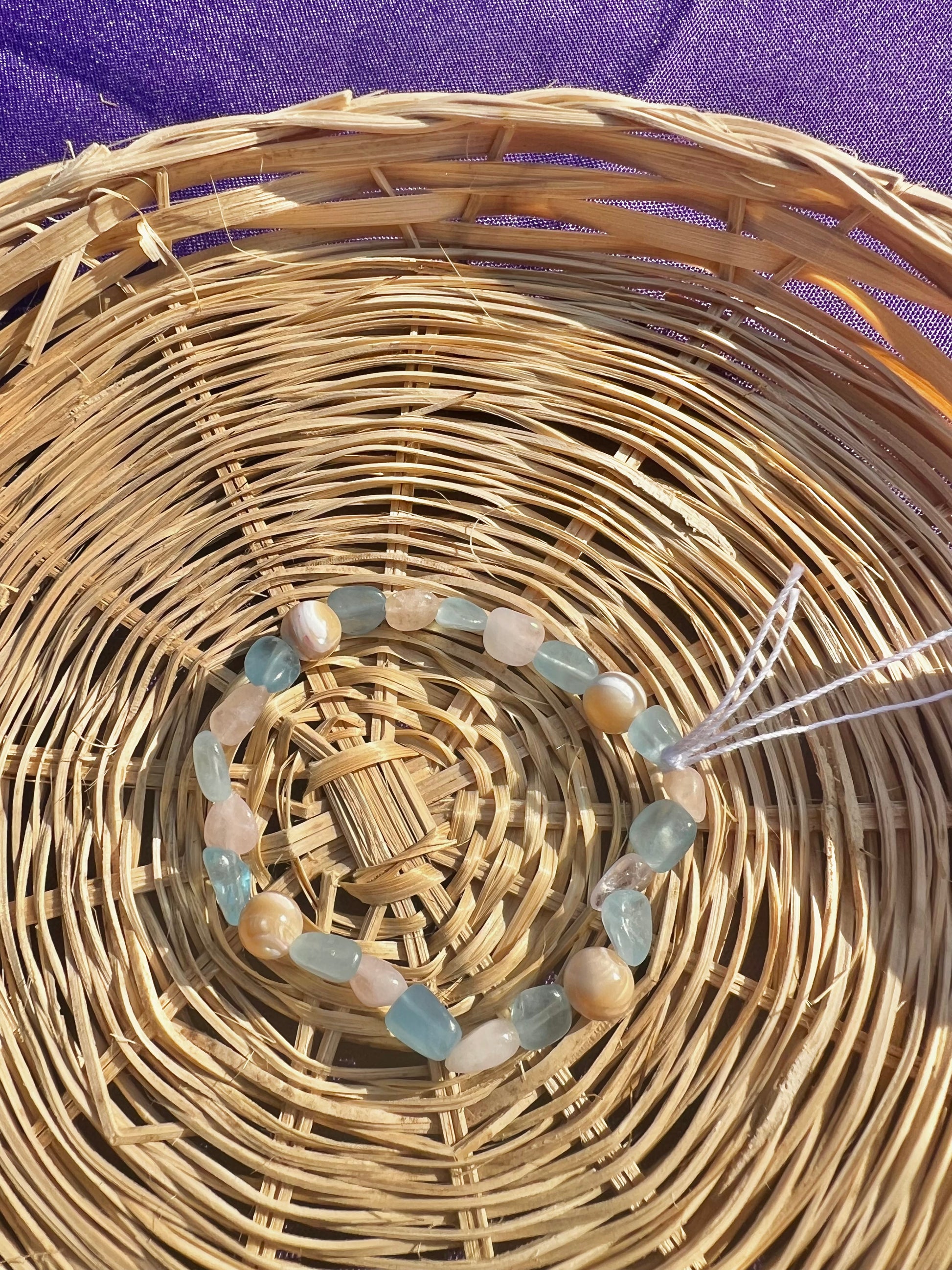 Mother of Pearl: A calming and intuitive aura, harnesses the energy of the ocean and balances and soothes the mind & body. Attracts prosperity and enhances intuition & spiritual growth.