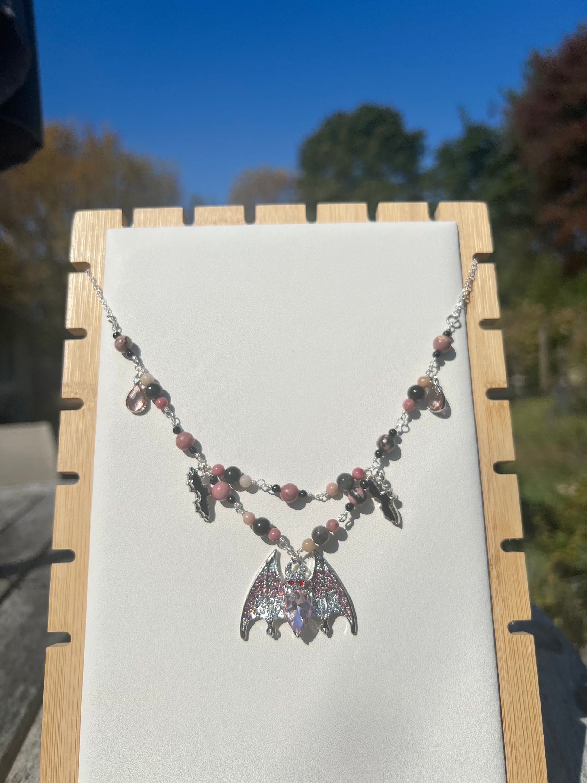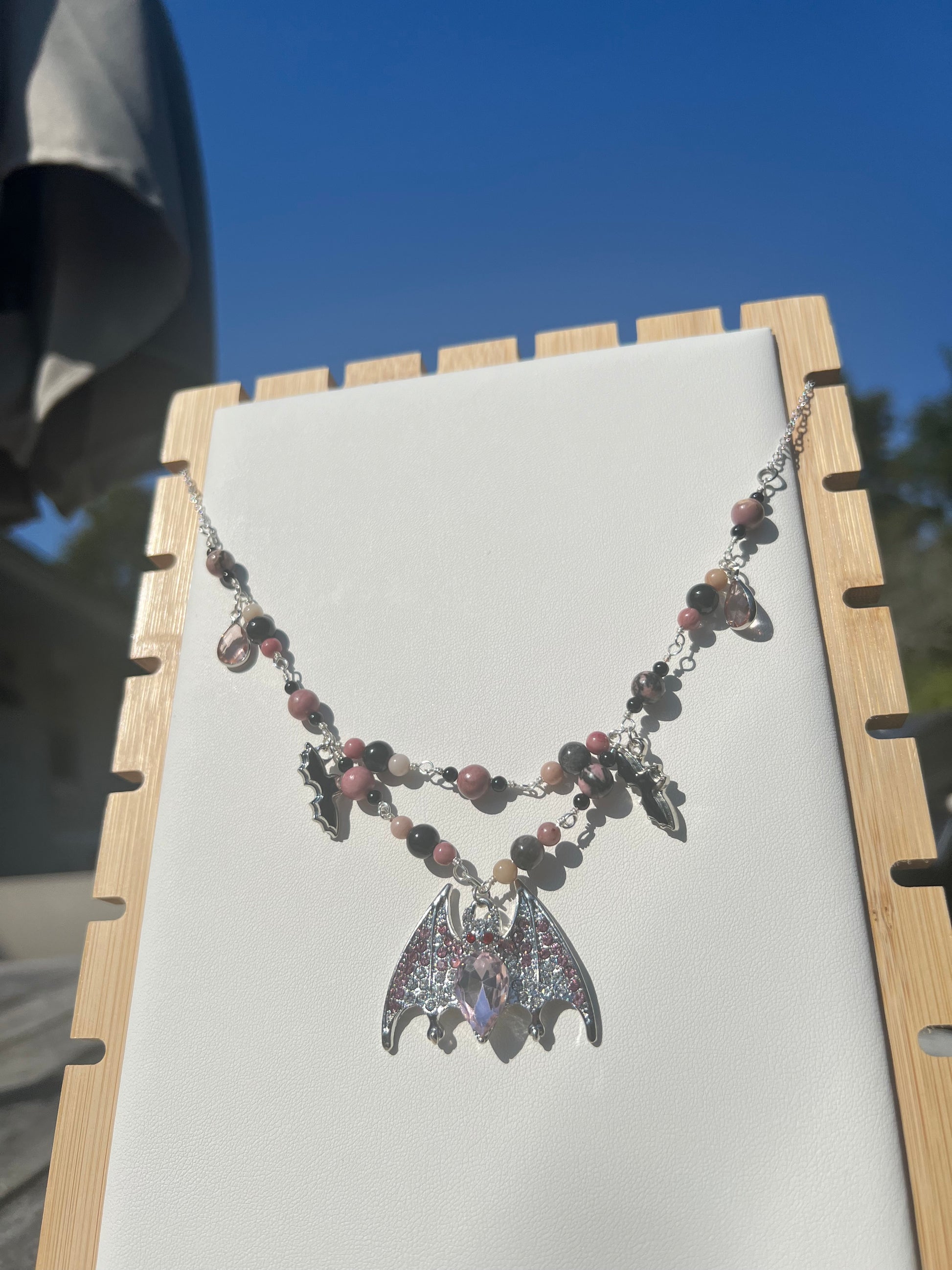 Silver Sheen Obsidian, Rhodonite, & Black Onyx Spooky necklace