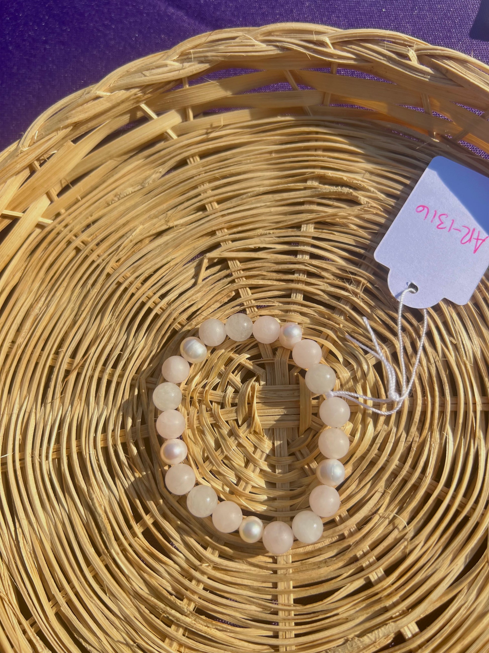 Rose Quartz & Freshwater Pearl & White Jade bracelet