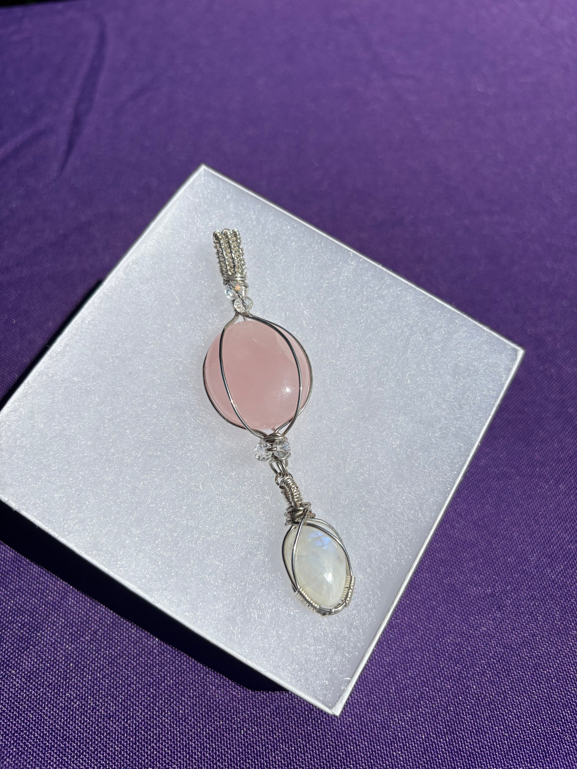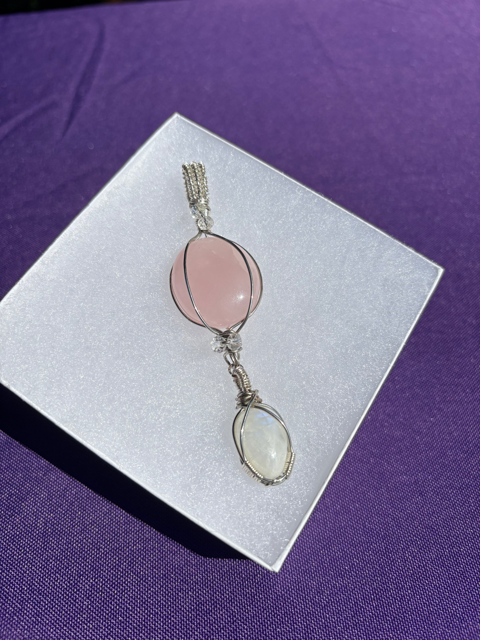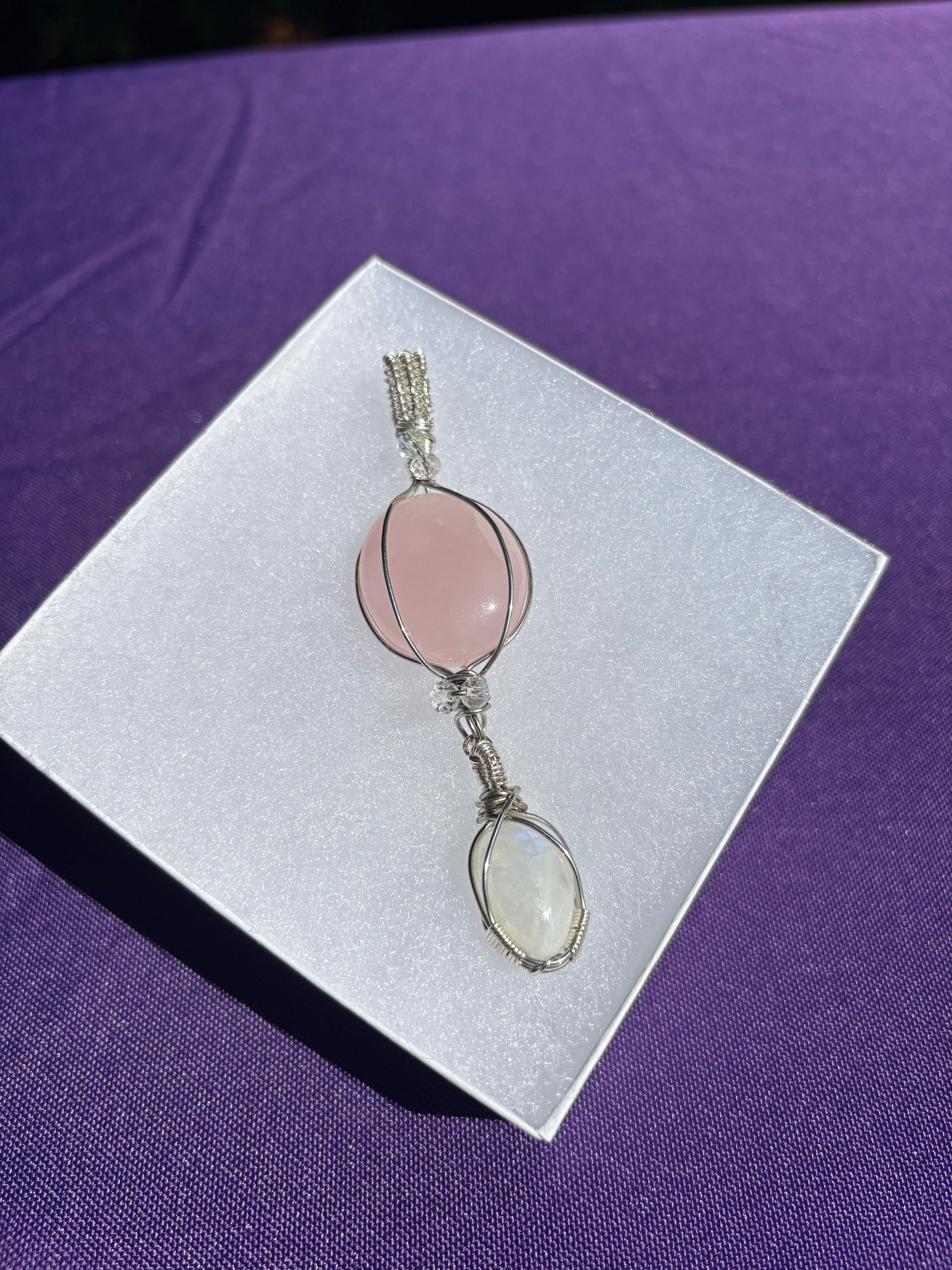 Rose Quartz, Rainbow Moonstone, Topaz Double Tiered Pendant