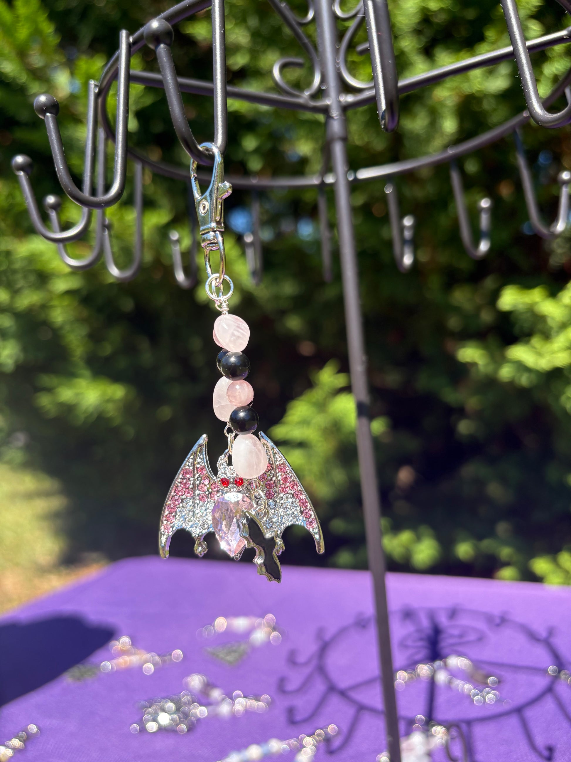 Rose Quartz & Rainbow Obsidian Bat Charm