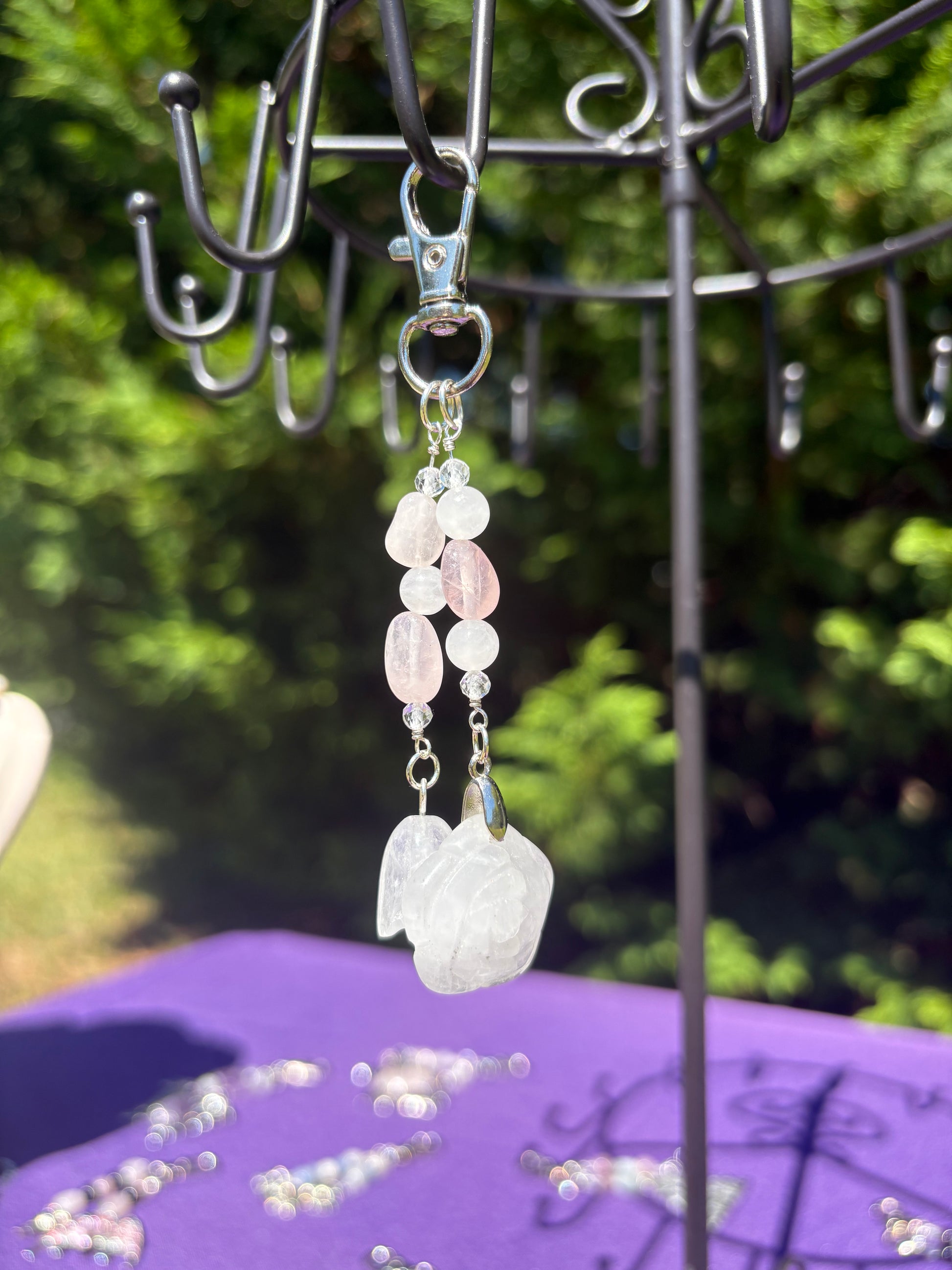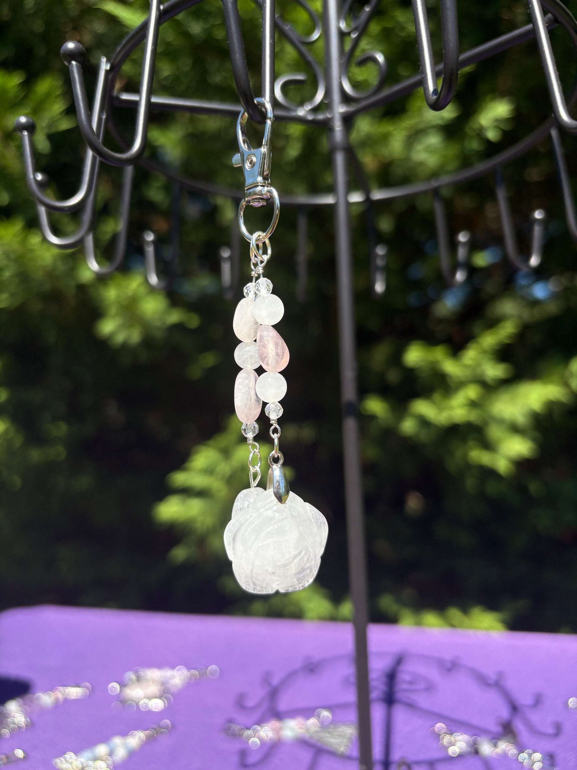 Rose Quartz & White Jade Flower Charm