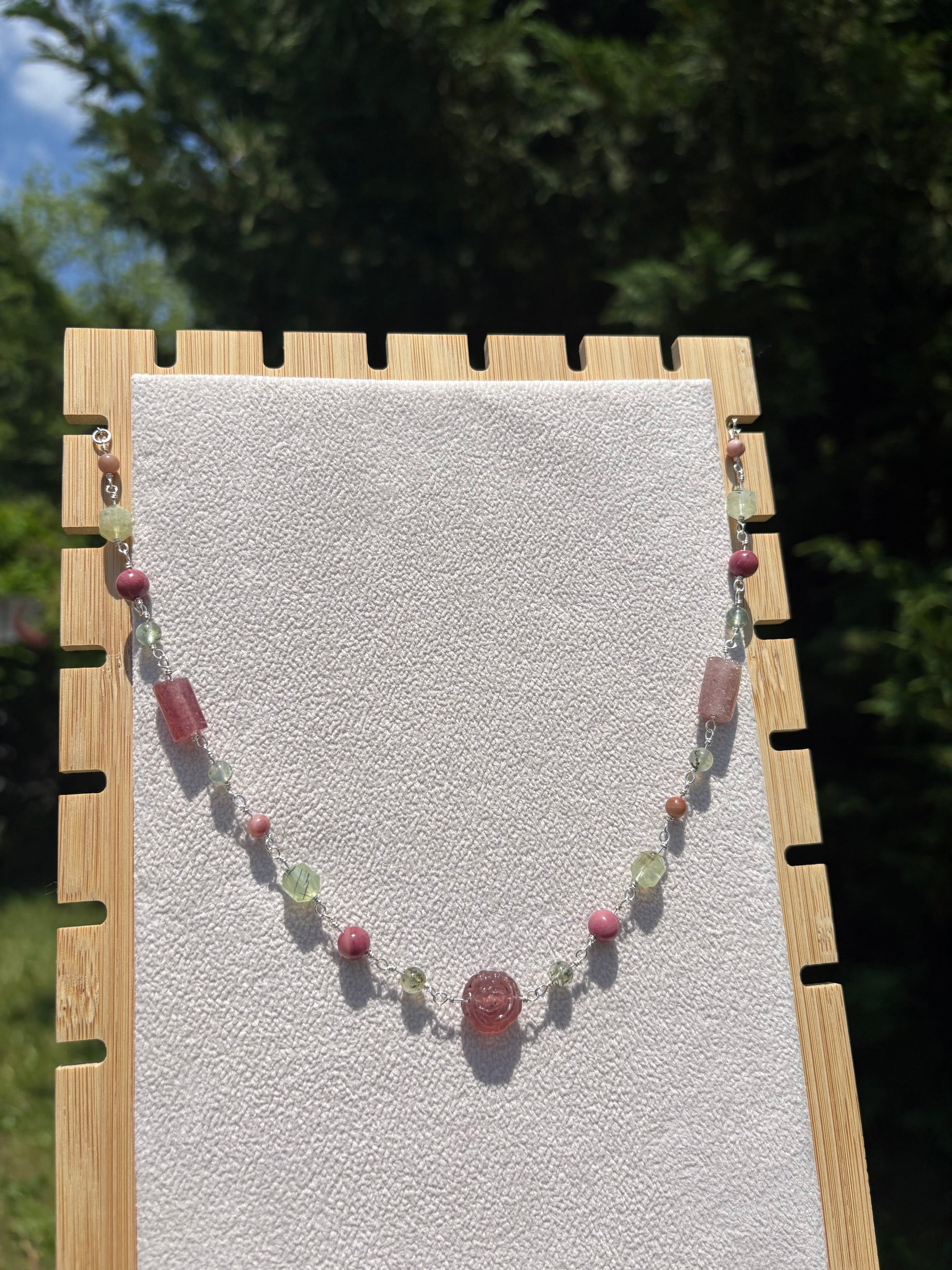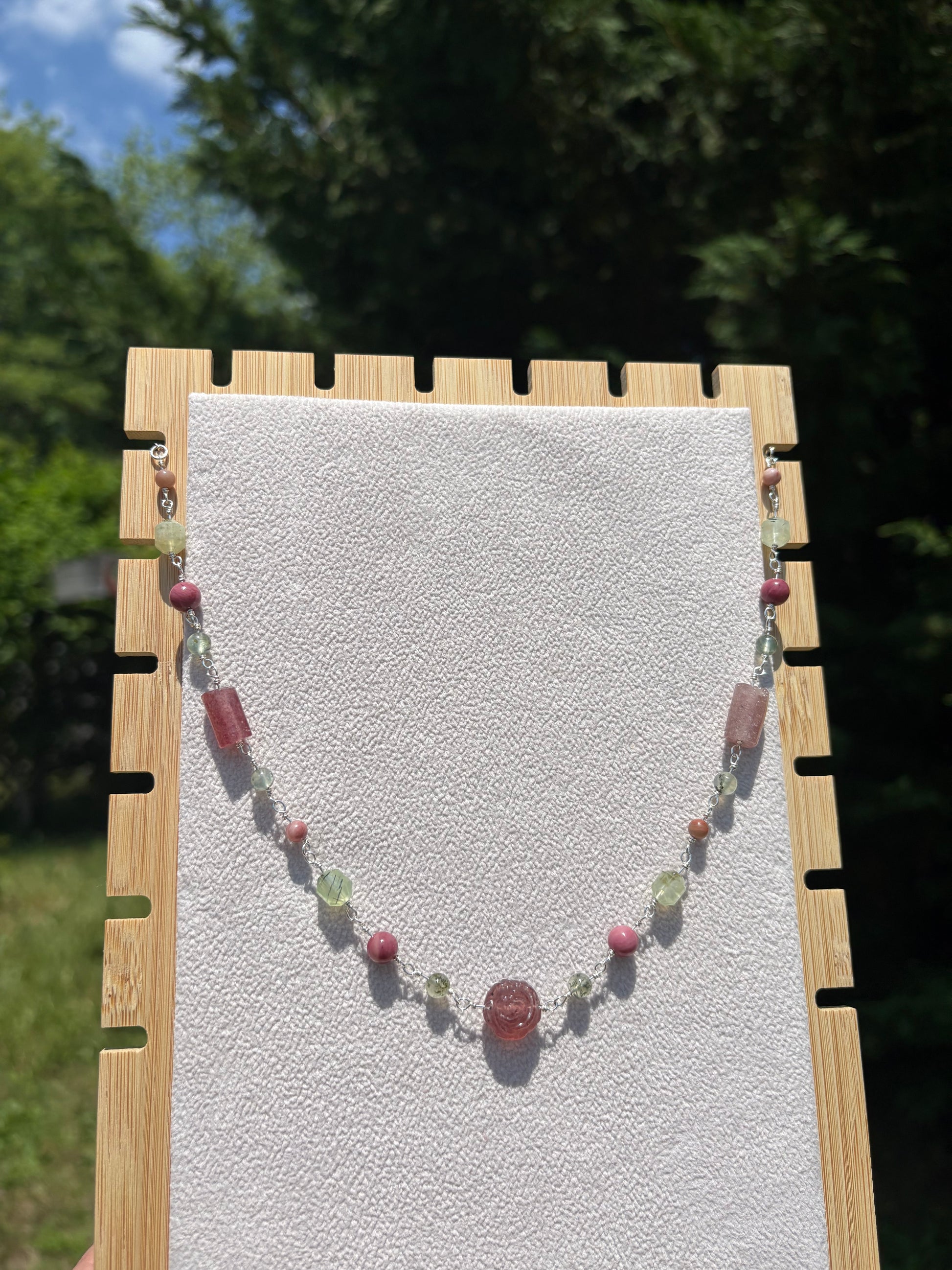 Strawberry Quartz, Prehnite, & Rhodonite Rose necklace