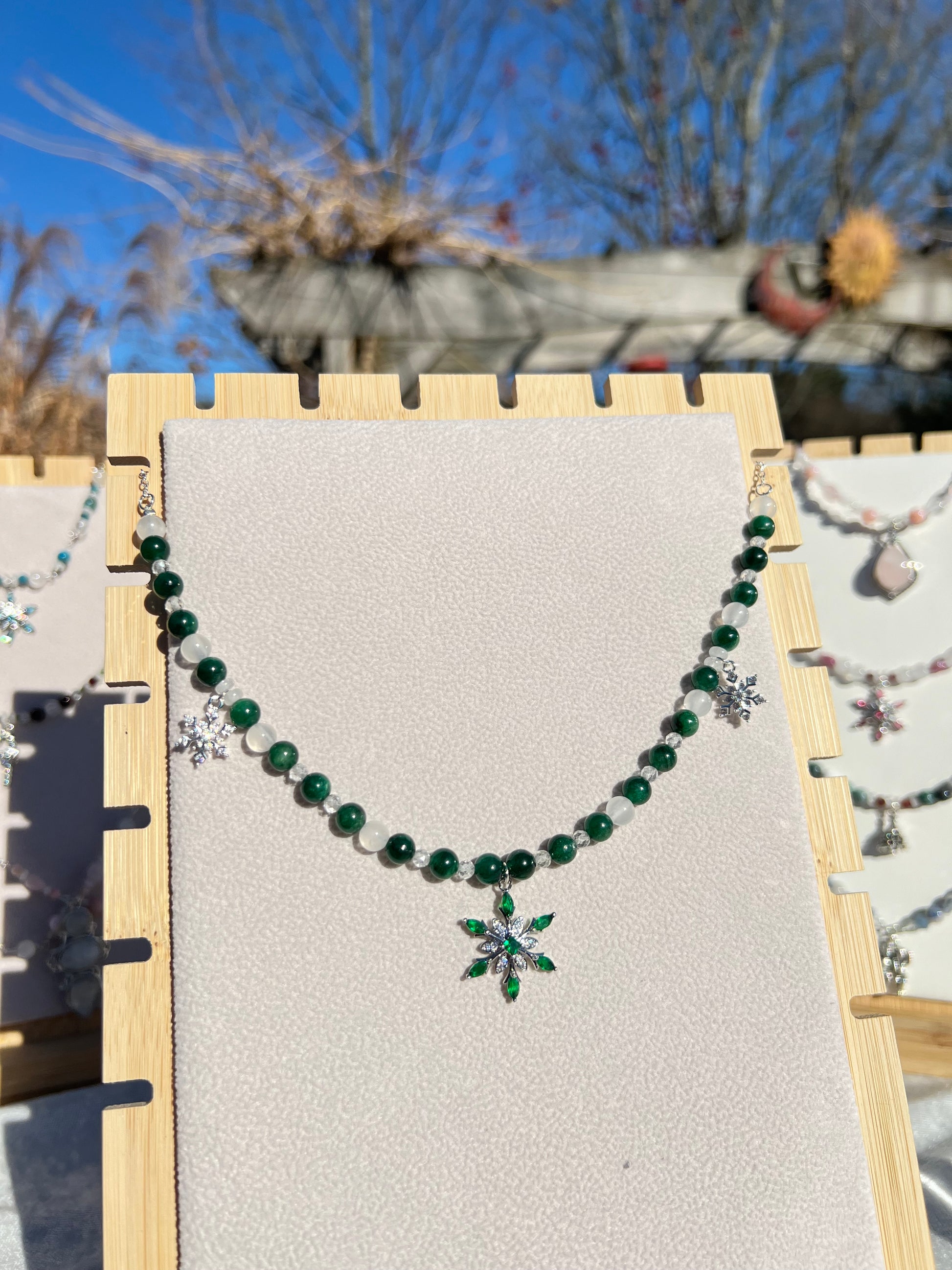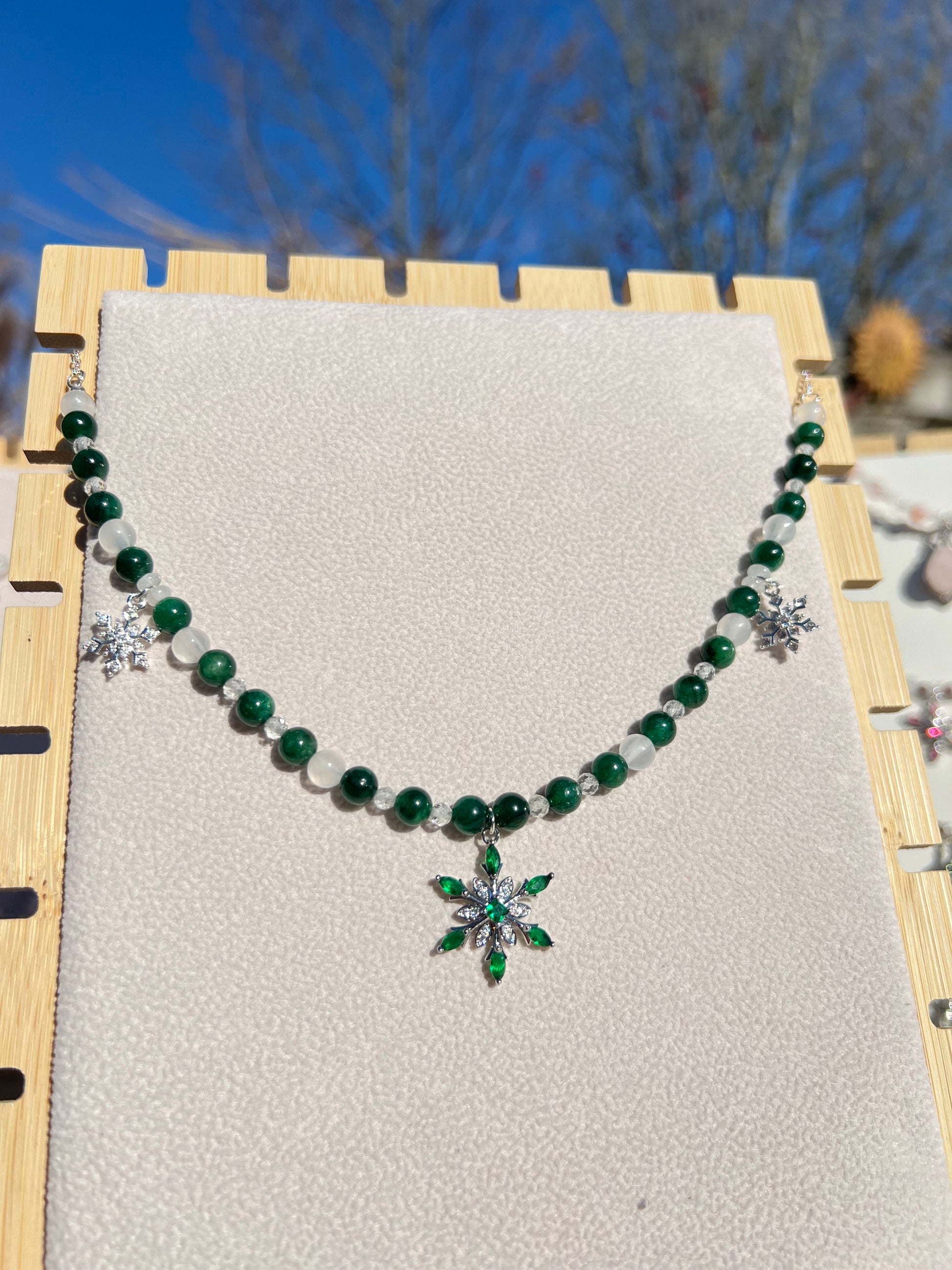 Green Muscovite & Selenite & Topaz & White Jade festive necklace