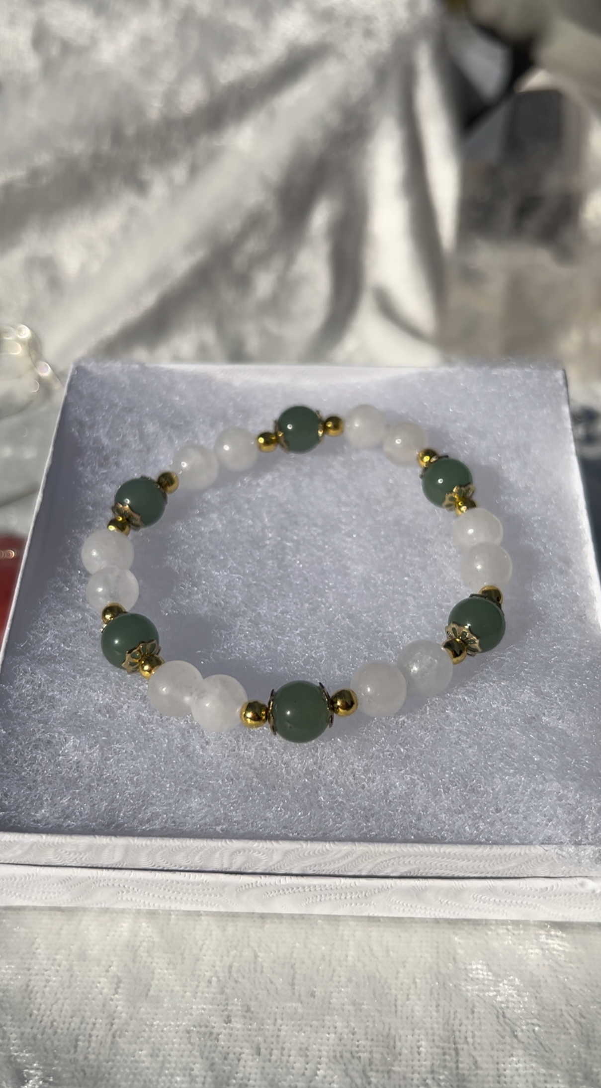 White Jade and Green Aventurine Bracelet